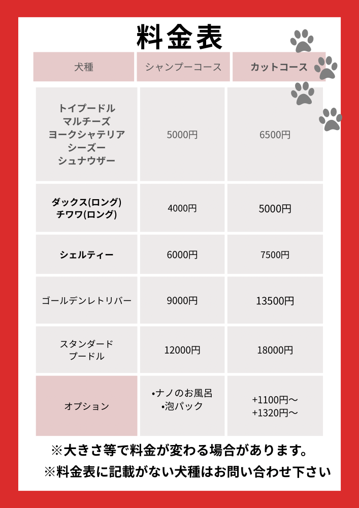 料金表